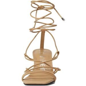 The Calvin Klein Calista block heel sandal is a stylish addition to any outfit. The barely there design features ultra thin all-over straps and a wrap around ankle tie.