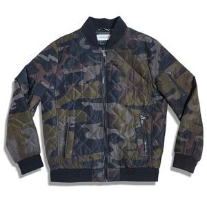 Calvin Klein Camo Olive Quilted Camouflage Bomber Flight Jacket;