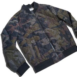Calvin Klein Camo Olive Quilted Camouflage Bomber Flight Jacket