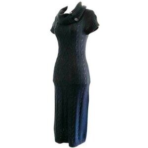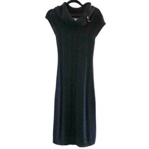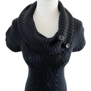 Calvin Klein Cap Sleeve Cowl Neck Cable Knit Wool Blend Sweater Dress Sz XS. Beautiful black wool/acrylic blend cable knit fabric. 42” long, 15.5” armpit to armpit, 13” waist seam to seam, 17.5” hips seam to seam. Preowned, no signs of wear, adorable dress!
