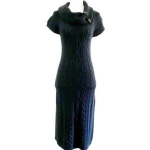 Calvin Klein Cap Sleeve Cowl Neck Cable Knit Wool Blend Sweater Dress Sz XS