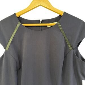 Calvin Klein Cap Sleeve Faux Leather Trim Sheath Dress Sz 10 Indigo Work Career