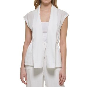Calvin Klein Cap Sleeve Open-Front Jacket Women's Small White Solid
