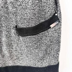 Update your wardrobe for the season with this stylish Calvin Klein cardigan. Featuring an open, draping front and shoulders, this cardigan is perfect for layering. The soft-to-touch fabric ensures a comfortable fit, making it a great addition to any outfit. The classic black and gray colors offer a versatile look that pairs well with a variety of styles.
