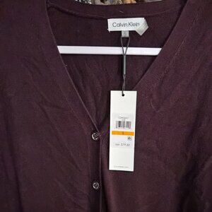 NWT Calvin Klein Cardigan Sweater. In a Plum Burgundy Color. Size Small. No Flaws.