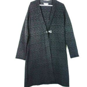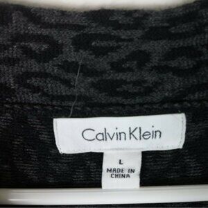 Calvin Klein Cardigan Womens L Merino Wool Animal Print Duster Open Front