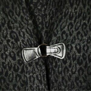 This Calvin Klein cardigan is a perfect blend of cozy comfort and polished style. The long, draped silhouette and subtle charcoal animal print make it a sophisticated layering piece for the office or for elevating a simple weekend look. ➡️ Wear it over a simple cream-colored shell and black trousers for a timeless work ensemble, or pair it with dark denim for a chic, off-duty outfit.