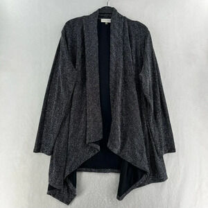 Calvin Klein Cardigan Womens L Metallic Black Herringbone Open Waterfall Sweater