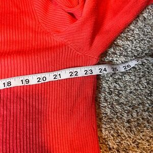 Striking cardigan by Calvin Klein, a statement piece perfect for adding a pop of color to your wardrobe. Featuring a full zip front with a sleek, golden zipper, this long-sleeved knitwear top boasts a flattering V-neck and a comfortable, ribbed texture. The vibrant red hue is complemented by subtle gold detailing on the lower right side, adding a touch of elegance. Pair it with tailored trousers for a polished office look, or dress it down with jeans for a casual weekend outing. Also ideal for layering on a chilly evening. Color is different in screen. Sweater looks red but is actually pink.
