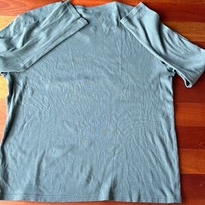 Calvin Klein Charcoal Gray V-Neck Long Sleeve Cotton Ribbled T-Shirt