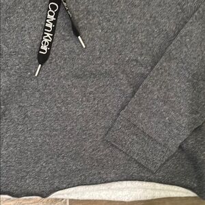 Stylish charcoal hoodie with Calvin Klein logo on drawstrings. Ideal for everyday comfort.