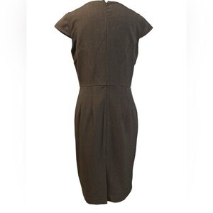 Chic charcoal gray midi dress by Calvin Klein. Features cap sleeves and a stylish waist detail. Ideal for versatile wear.