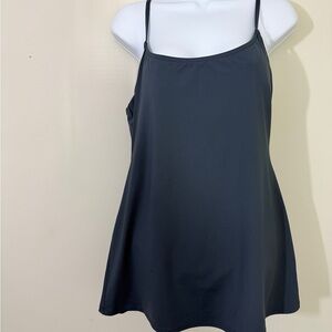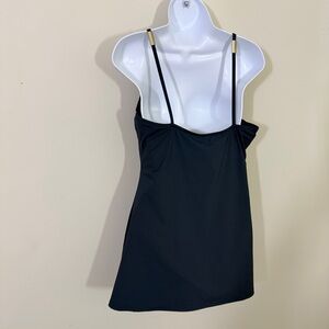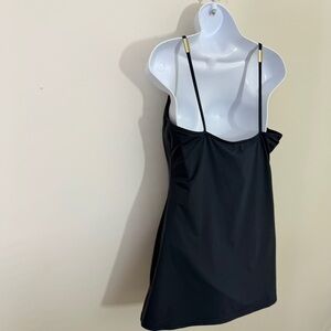 Elegant charcoal swimwear by Calvin Klein. Ideal for beach or pool. Includes the attached panty. It is so cute on. There is no bra attached. Almost new with no visible flaws Could get away wearing it as a mini dress. The total length is 21” long. Any questions please feel free to ask