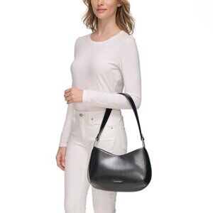 Classic style and a functional interior come together perfectly with the Charlie shoulder bag by Calvin Klein. Comes with a 12” long shoulder strap.