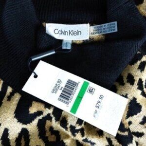 -Calvin Klein Cheetah Print Slouchy Sweater Tan And Black
