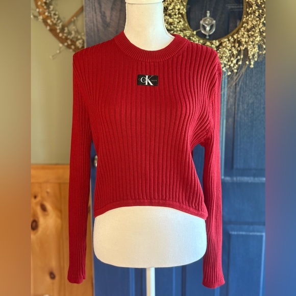Calvin Klein Cherry Knit Ribbed Sweater size L NWT
