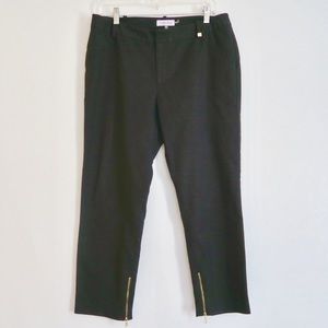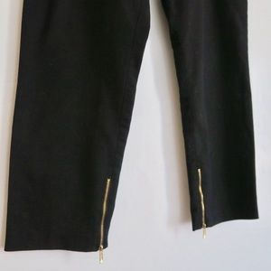 CK pants 63% cotton, 34% polyester and 3% spandex. Waist : 33.85inches / hip: 40 inches / length: 33inches . Color : black. Details in golden