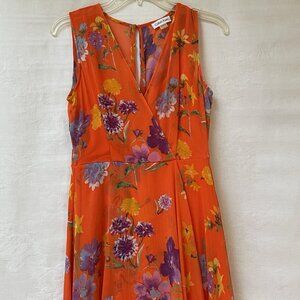 Calvin Klein Chiffon V-Neck Maxi Dress Womens 4 Faux Wrap Floral Party Wedding