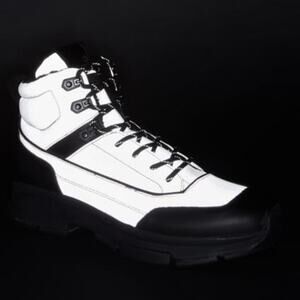 Sneaker-style design defines a bold boot built from durable materials in a high-top silhouette.