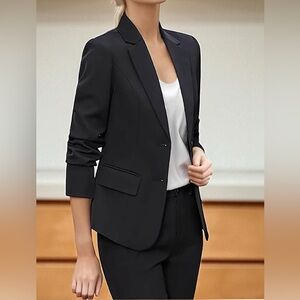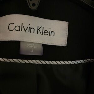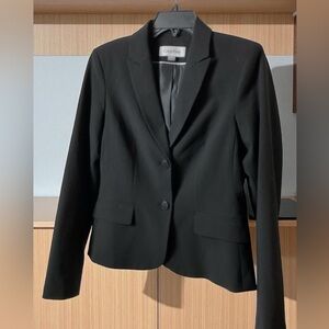 Timeless black blazer by Calvin Klein. Perfect for professional and casual settings. Sleek and versatile design.