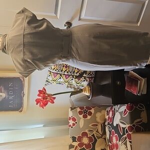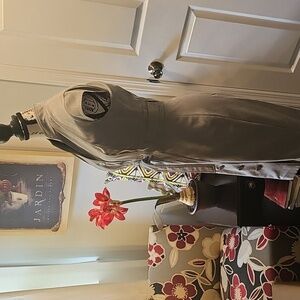 Timeless gray fabric from Calvin Klein. Perfect for elegant designs or just an everyday professional workdress. Pair it with a large wrap (as shown here) and burgundy blue or gray pumps.
