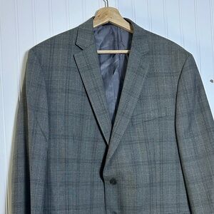 Calvin Klein Classic Gray Plaid Men's Blazer Size 44R Full Lined Wool