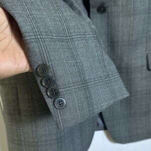 Elevate your style with this classic gray men's blazer. Perfect for any formal occasion.