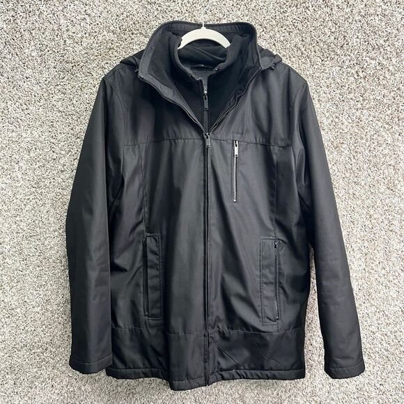 Calvin Klein Coat Men’s M Black Weather Resistant Double Zip Up w/Removable Hood