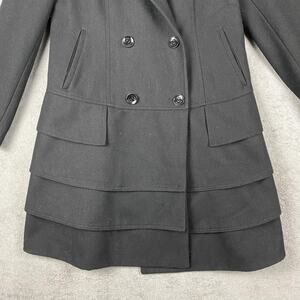 Calvin Klein Coat Womens Black Double Breasted Tiered Ruffle Hem Peacoat Style