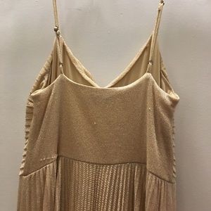 Great Calvin Klein dress size 4, perfect for weddings & summer parties. Pleated skirt. Adjustable straps. Super comfortable and very flattering, a little bit of wear in the back but not really noticeable. Shell 85% rayon 15% metallic, lining 95% polyester 5% spandex.