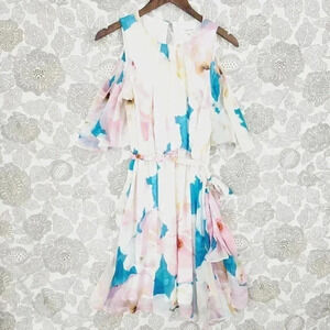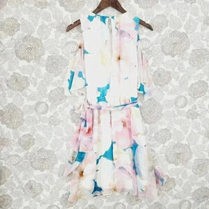 Calvin Klein Cold Shoulder Ruffle Floral Midi Sheer Dress 8 8229
