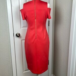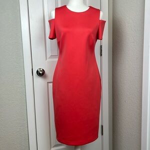 Calvin Klein Cold Shoulder Sheath Cocktail Coral Fitted Dress