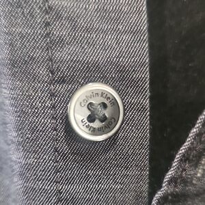 Calvin Klein collection Chic charcoal button-down shirt. Features front pockets and sleek design. Ideal for versatile styling. 100% Cotton