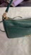 Elegant green handbag with embossed logo. Features gold hardware and adjustable strap.