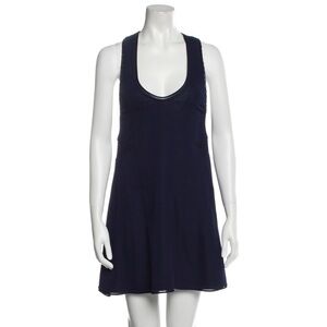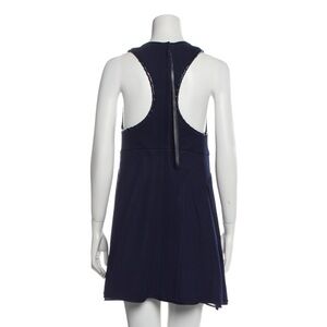 Calvin Klein Collection Marine Blue Cully Heavy Knit Leather Trim Mini Dress L