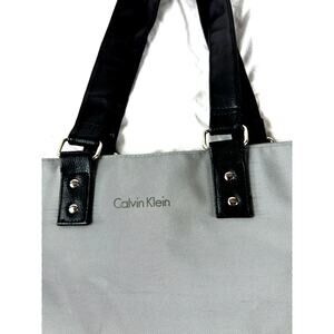 Calvin Klein metallic gray nylon tote bag with inside zippered security pocket. Perfect size to carry laptop and more.