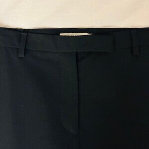 Calvin Klein Collection 100% wool black pants size 4 with classic styling. Made in Italy. Lining is 100% rayon - lining is only on top portion of pants. Front zip with 4 belt loops (2 in front) and 2 pockets. Boot cut (see photo). High waist: 14.75" front and back. Center of pants from waist to bottom is approximately 37". Bottom of pants are 8" wide. Full in the butt. Inside left leg seam is some loose, but holding. Pre-owned - in good condition.