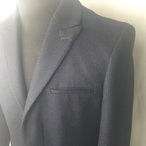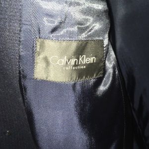 Calvin Klein Collection. Dark navy textured beautiful overcoat. Brand New With Tags. Covered button front. Sleek slim slit pockets on side. Slit in rear. Same day shipping. Size 50 Europe/Italy size. Size 40 US Size.