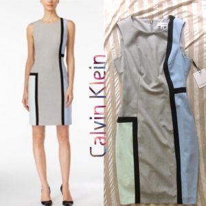 Classic, color block sheath dress w/ mint green & pale blue panels that add fantastic color.