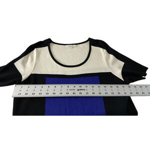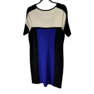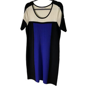 Calvin Klein Color Block Women’s Large Blue Black White Dress Rayon Nylon Blend