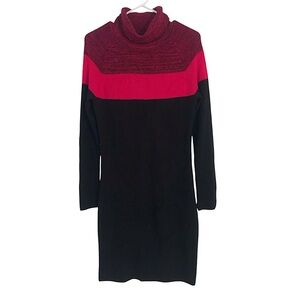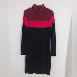 Calvin Klein Stripe Color Block Longsleeve Mock neck Knit black / pink dress