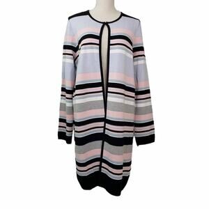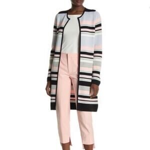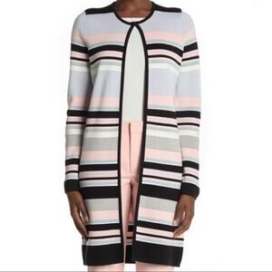 This long colorblock cardigan is a great finishing touch for the office outfit, but works just as well lounging at home.