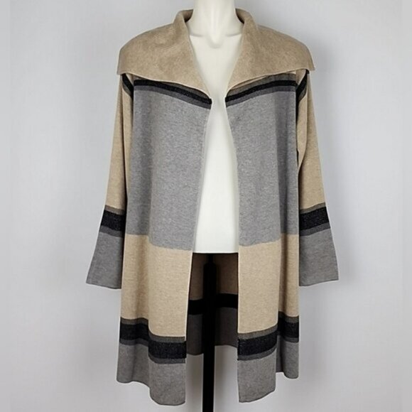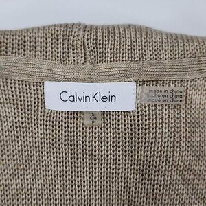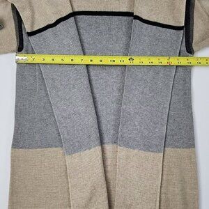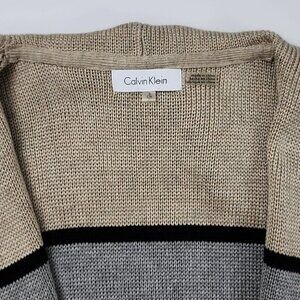 Calvin Klein Colorblock Tan Grey Open Front Long Knit Cardigan Wide Collar Sz S