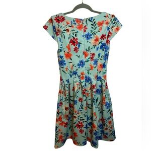 Embrace vibrant style with this colorful floral cap sleeve dress. Perfect for any occasion, this dress features a lively mix of colors that will make you stand out. So pretty and perfect for spring. Womens size 4. Has pockets!