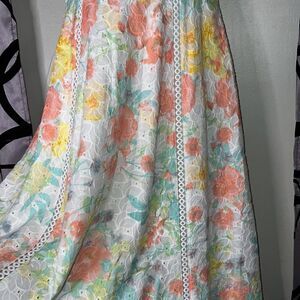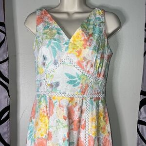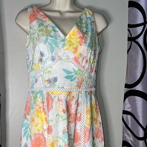 Calvin Klein Colorful Pastel Floral Eyelet Sleeveless Cotton Dress Size 2