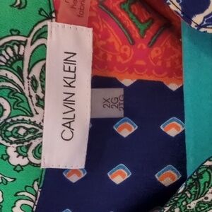 Calvin Klein vibrant patchwork design. Long sleeves. Button-up front.