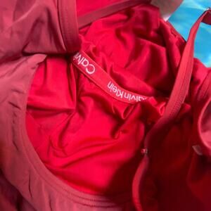Calvin Klein Coral One Piece Bathing Suit Ruched Size 10
