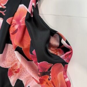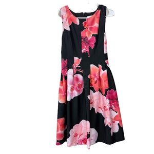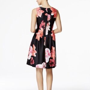 Calvin Klein Coral Pink Floral Sleeveless Pleated Scuba Flare Dress Pockets Sz 4