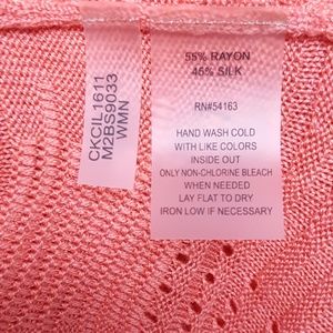 Calvin Klein Coral Silk Blend Crochet Open Cardigan