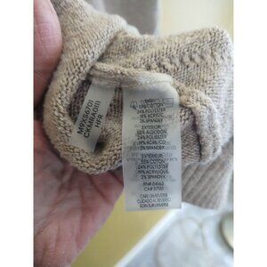 Cotton, polyester, acrylic and spandex, long sleeve, cowl neck, pullover, beige color, medium weight, good condition and quality